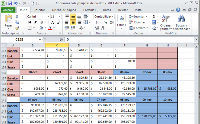 Abrimos el archivo “Cobranzas Lote y tarjetas de Credito - 2013 - Acceso directo.xls” (enviado por mail)