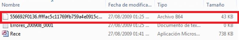El archivo xxxx.b64, se encuentra en la carpeta S:\RECE\RESE Crespo\AAAAMMDD\2_ Back_Siap.