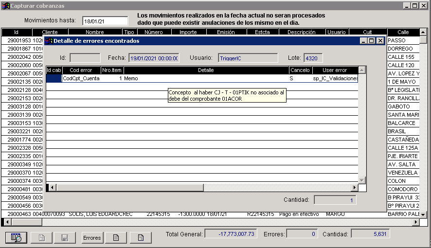 Para poder ver el tipo de error debemos colocar el puntero del mouse en “DETALLE”, justo arriba de la palabra MEMO. Veremos una venta con el detalle.