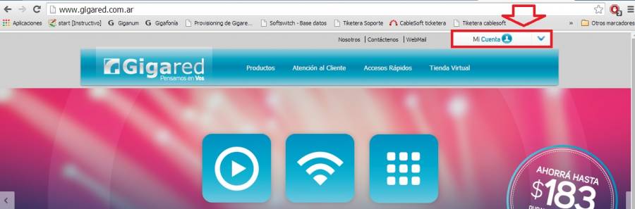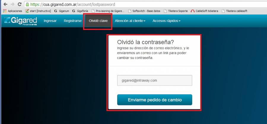 Para blanquear la password ingresamos a la Web de gigared.- www.gigared.com.ar -