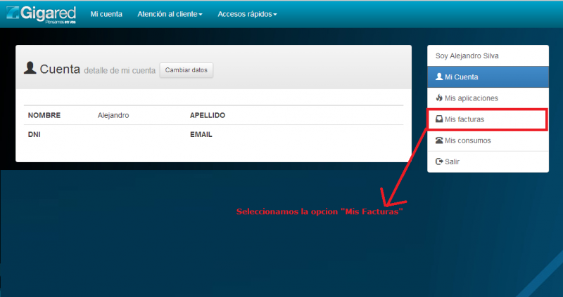 En el panel izquierdo, veremos que dice “Mis Facturas”, hacemos click ahi.