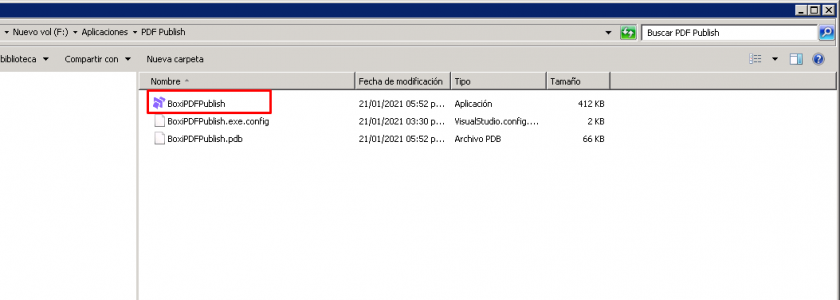 6. El programa reconocerá de las carpetas que se encuentran en F:\FACTURAS-PDF las que tienen el sufijo “_en_proceso” y trabajara sobre estas.