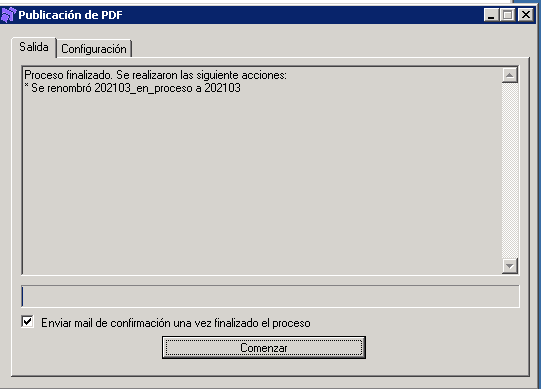 7. Una vez finalizada la tarea el sistema confirmará la publicación del archivo